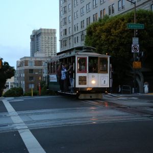 Nach einer kleinen Pause im Hotel und nach dem Abendessen sind wir dann mit den Cablecars zur Lombard Street gefahren. Es ist echt schön, mit welcher Freude die Gripmen und die Bremser bei der Arbeit sind. Die Glocken am Cablecar sind nicht nur für die Kommandos verwendet worden, sondern auch das ein oder andere Lied wird damit gespielt.