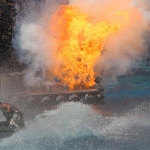 Danach ging es dann weiter mit einer spektakulären Live-Perfomance aus Waterworld. Der Film mag ja zu regen Diskussionen führen, wenn es um die Qualität geht, aber die Aufführung war wirklich spitze. Diese Show ließ auch mein pyrotechnisches Herz höher schlagen.