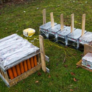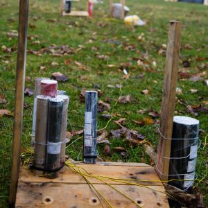 Heuer hatten wir dabei leider nicht so gutes Wetter, denn es hat immer wieder geregnet. Dadurch war der Rauch ein bisschen hartnäckig und hat die Sicht aufs Feuerwerk ein klein wenig getrübt. Dafür konnte ich am Nachmittag nach dem Aufbau des Feuerwerks ein klein wenig mit meinem Makro Objektiv spielen – Wassertropfen auf Stretchfolie ist einfach verlockend. Dabei habe ich auch gemerkt, dass ich wohl besser ein Stativ genommen hätte.