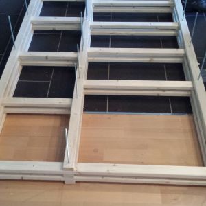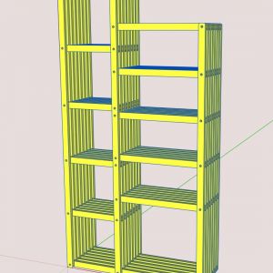 Nach dem Aufmessen ging es dann an den Computer einen Plan zeichnen. Natürlich in 3D (und in Farbe *g*). Nach der Freigabe des Plans durch Verena ging es dann auch schon ans Einkaufen und ich holte im Baumarkt fertig gehobelte Latten und begann mit dem Einrichten der “Werkstatt”. Es ist wahnsinnig wie aufwendig es ist das Werkzeug herzurichten und wieder zu verräumen, wenn man keine fixe Wertstatt hat.