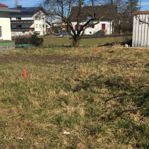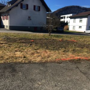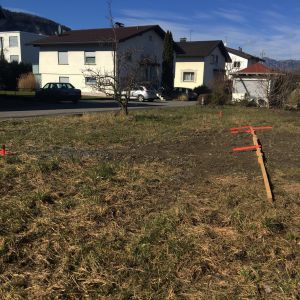 Letzten Freitag haben wir uns mit Martin Ludescher von der Baurechtabteilung amkumma und unseren zukünftigen Nachbarn bei unserem Grundstück zur Bauverhandlung getroffen.