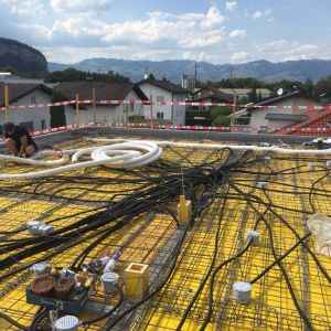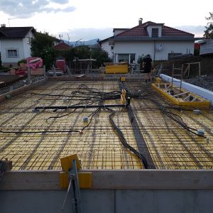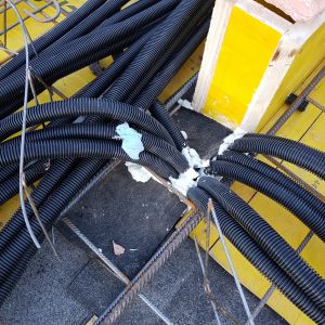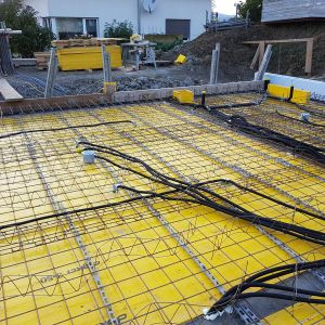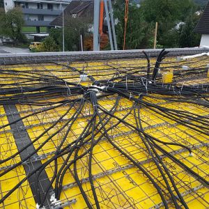 Immer bevor die Decke mit Beton gefüllt wurde hatten Michael und ich einen Einsatz – wir mussten die Rohre für die Elektrik verlegen, damit wir dann später auch die Drähte für die ganzen Schalter, Steckdosen und Netzwerkdosen einziehen können. Über 1000 m haben wir verlegt – in unseren Decken ist wirklich viel schwarz zu finden.
